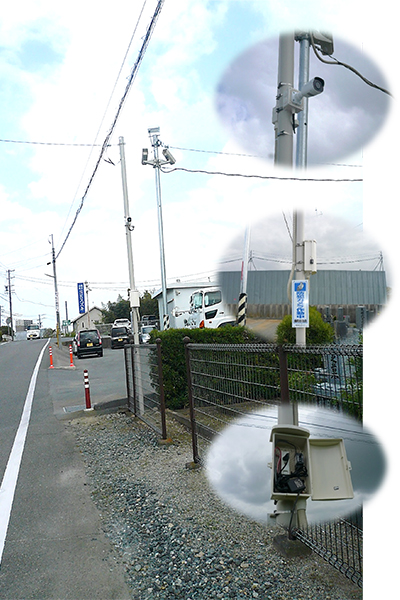 駐車場でのいたずら、ゴミの不法投棄、窃盗、痴漢、ひったくりなどさまざまな犯罪を監視するカメラがあれば抑止力となり、かりに犯罪が発生しても解決手段としてその画像は有効です。実際に監視カメラの設置台数は増え続けてます。しかし都会など資金的に余裕がある場所では可能ですが、地方では金銭的な理由で多くのカメラを設置できない現状にあります。そこで電柱などに設置する通常の防犯灯にカメラを付けて一体化し、低価格を実現しました。